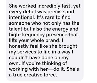 I offer many services to either get you started or rebrand your business, as well as mentorships for those who are looking to start a healing practice, build your dreams and know how to take action.